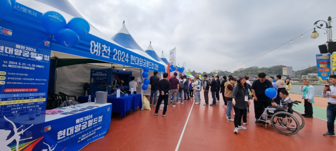 6일 예천 2024 현대양궁월드컵대회조직위원회에 따르면 지난 3일부터 5일까지 열린 예천농산물축제장에서 홍보부스를 운영하며 활 체험(호버볼), 양궁(리커브, 컴파운드) 활·화살 전시, 홍보물품 배부 등의 활동을 펼쳤다.