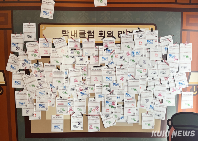 도구리는 막내들을 응원하는 이벤트도 준비했다. 팝업스토어 1층에서는 세탁하고 싶은 실수 사연을 선택하거나, 직접 작성해 실수 세탁기에 넣으면 ‘한정판 라벨 키링’을 받을 수 있다. 각 층에서 이벤트를 체험해 스탬프 4개를 완성하면 럭키드로우를 통해 △타월 △볼펜 △빅스티커 △띠부씰 등의 경품을 받을 수 있다.