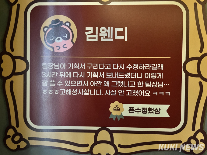 “처음 회사에서 주임이라는 직책을 ‘주인’으로 듣고 김주인님, 이주인님 이러고 다녔는데 다들 모른척 해주셨다. 나중에 팀장님이 “주인님 아니야, 노예제 끝났어”라고 하면서 알려주셨는데, 한동안 직장 내 별명이 ‘도비(해리포터 등장인물)’였다.”