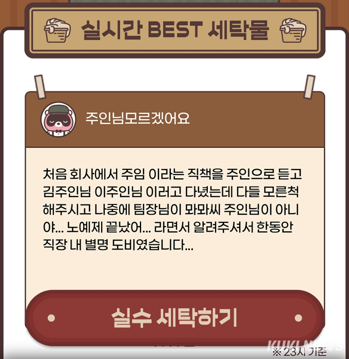 막내클럽은 사회초년생 막내들의 실수담을 유쾌하게 풀어내는 캐릭터 도구리의 유저 참여형 캠페인이다. 올해 막내클럽 ‘실수 세탁소’는 사회 생활을 하며 벌어진 막내들의 웃지 못할 실수들을 은밀하게 세탁한다는 콘셉트로 구성했다.