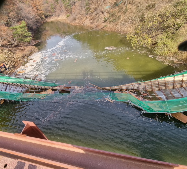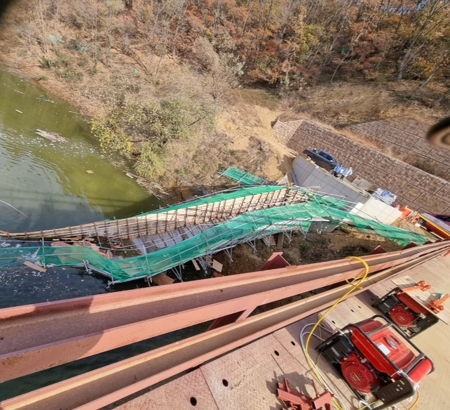 27일 경북소방본부에 따르면 이날 오전 11시 4분께 안계댐 교량 공사 현장에서 콘크리트 타설 중 철근 거푸집이 붕괴됐다.