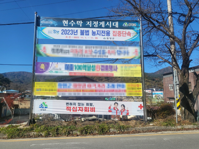 경남 함양군은 코로나19 이후 상업용 현수막 수요가 증가함에 따라 오는 12월부터 현수막 지정 게시대 게시 기간을 15일에서 10일로 조정한다.