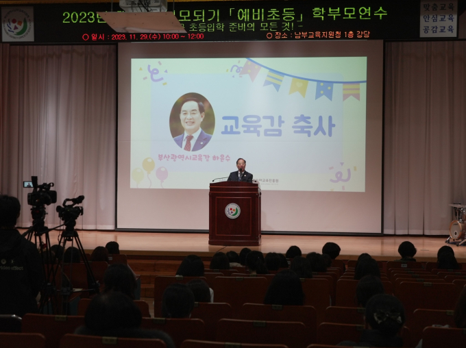 하윤수 부산광역시교육감이 부산유아교육진흥원이 개최한 예비초등 학부모 연수에 참석했다.