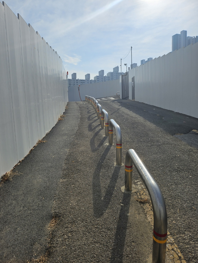 기자가 방문했을 때 학생들의 통학로와 공사 현장은 벽 하나로 구분되어 있었다. 특히 바람이 강하게 부는 부산 지역의 특수성을 감안할 때 벽 하나는 학생들의 안전을 보장하기에는 어림도 없어 보였다.