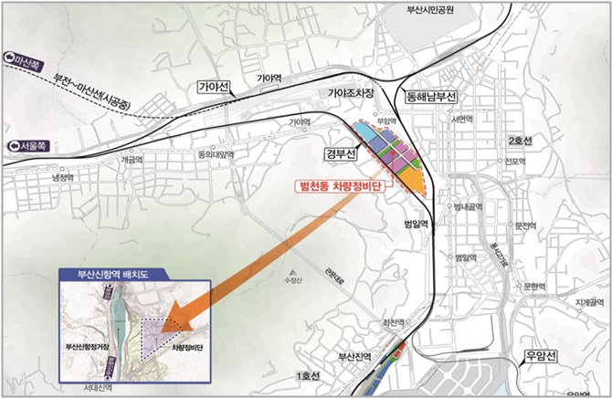 '범천동 철도차량정비단 이전적지 개발사업'은 범천동 철도차량정비단을 강서구 송정동 부산신항역 인근으로 이전하고 기존 부지를 포함한 24만㎡를 부산의 미래 성장 동력을 확보할 수 있는 4차산업, 문화콘텐츠 등이 융합된 도심권 혁신 공간으로 조성하는 사업이다.