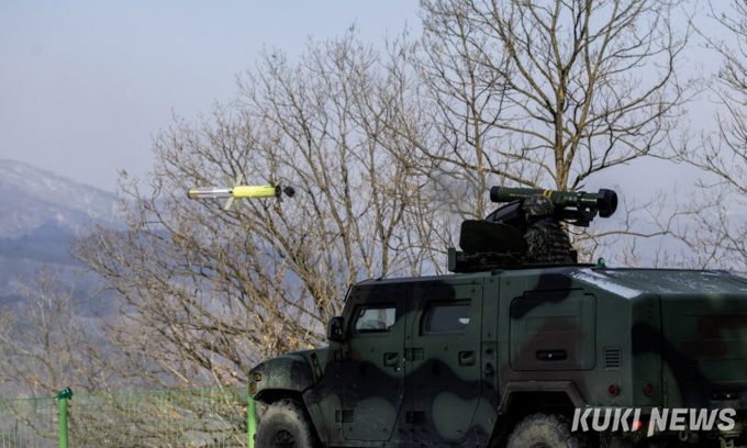 육군 7사단 장병들이 20일 강원도 화천군 일대 훈련장에서 보병용 중거리 유도무기 현궁을 발사하고 있다.(육군 7사단 제공)