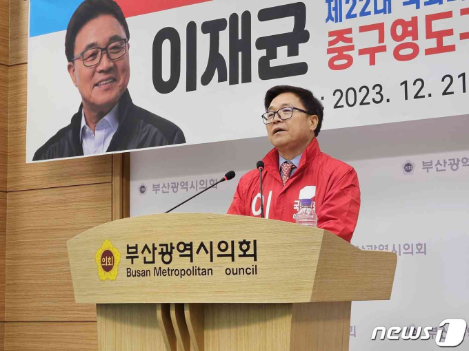 이재균 국민의힘 예비후보는 21일 부산시의회 브리핑룸에서 기자회견을 열고 출마를 공식화했다.