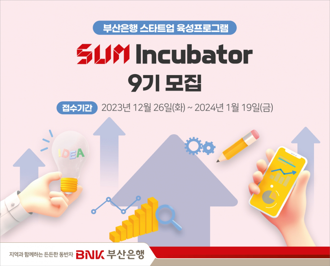 BNK부산은행은 지역 스타트업 육성 프로그램인 ‘썸 인큐베이터(Start-Up Matching Incubator)’ 9기를 모집한다.