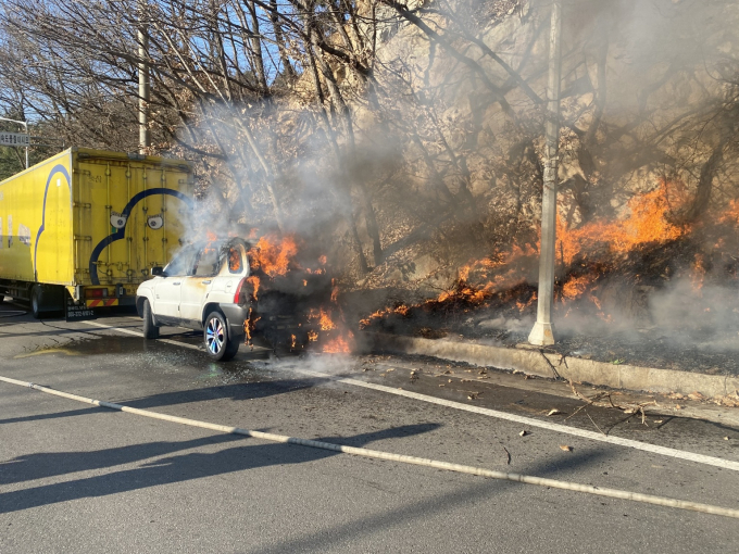 소방당국은 차량 배기가스 후처리장치에서 발생한 고열로 불이 난 것으로 보고 정확한 원인을 파악하고 있다.