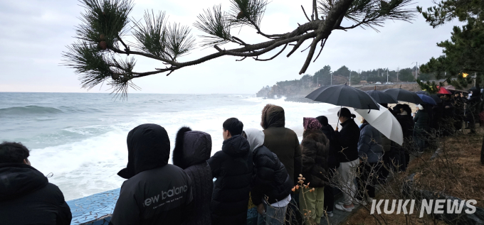 1일 동해 하평해변에서 일출을 기다리는 해맞이객들의 모습.
