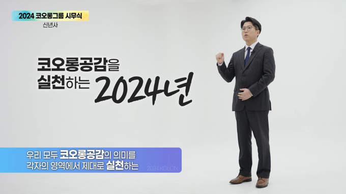 코오롱그룹은 2일 온라인 시무식을 열고 2024년 경영 방향을 담은 신년사를 발표했다. 신년사는 지난해 최우수 성과를 달성한 임직원에 주어지는 ‘One&Only상’을 수상한 이병탁 코오롱인더스트리 제조부문 상무보가 발표했다. 코오롱그룹은 지난 2022년부터 임직원이 신년사 작성과 발표에 참여하고 있다.