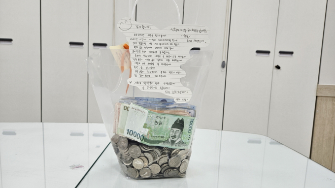 익명의 기부 천사가 전한 손편지에는 "한 해 동안 아이들과 함께 모았다"면서 "모든 분들이 건강하고 행복과 사랑이 늘 곁에 하기를 기원한다"란 내용이 담겨 있었다.