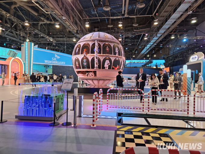 친환경 기술이 구현된 넷제로 세상을 테마파크 콘셉트로 그려낸 SK그룹은 SK하이닉스와 SK텔레콤의 AI 기술만 따로 모아 둔 ‘SK ICT 패밀리 데모룸’을 마련했다.