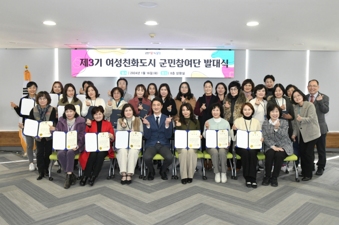 이날 발대식에 이어 ‘도시와 젠더’ 이미원 대표가 강사로 나서 ‘함께 만들어가는 여성친화도시’라는 주제로 군민참여단 역량강화교육을 진행했다.