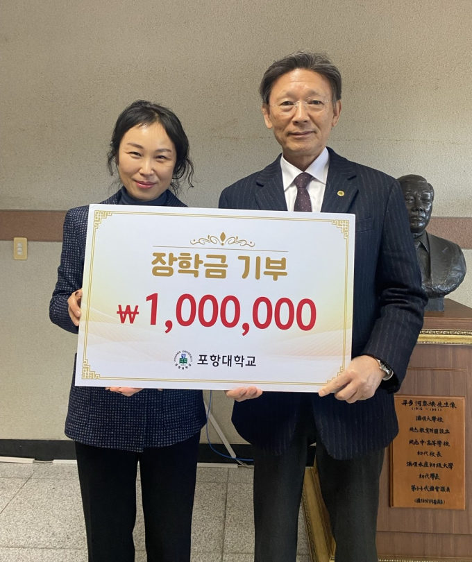 하민영 포항대 총장, 월급 일정액 장힉금 기부 릴레이 '실천'