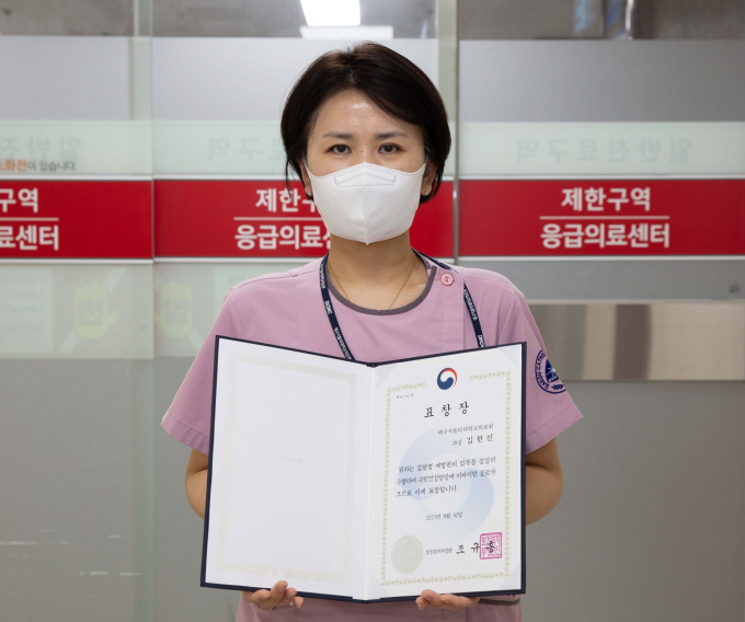 이에 보건복지부는 감염병 예방관리 업무를 성실히 수행해 국민건강 향상에 이바지한 공로가 크다며 김현진 간호사에게 표창장을 수여했다.