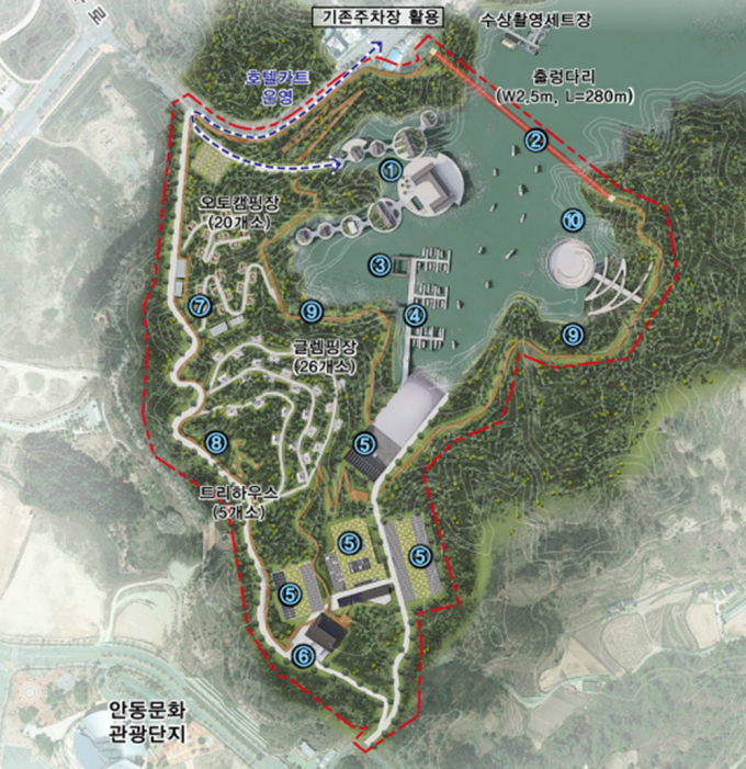 지역에 특화된 관광인프라 구축을 위해 수상 공연장(74억 원), 미디어파사드(22억 원)를 조성한다. 또 안동호 권역에 마리나리조트와 구 안동역 부지에 문화관광타운을 조성할 계획이다.