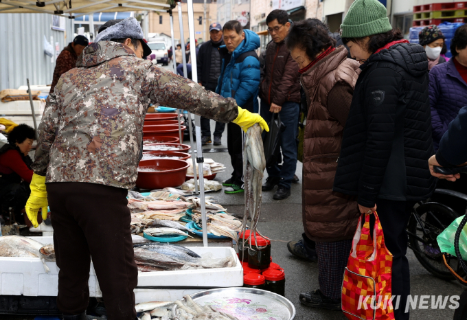 설 명절을 5일 앞둔 지난 4일 오전 전남 강진군 강진읍 오감통 전통시장에 명절 음식 준비를 위해 장을 보러 온 주민들로 북적이고 있다. 사진=강진군