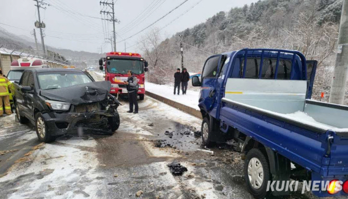 낮 12시 24분께는 동해시 나안동 KT 앞 도로에서 눈길에 BMW와 투싼 차량이 추돌해 투싼 차량 탑승자 등 3명이 중경상을 입어 병원으로 이송됐다.