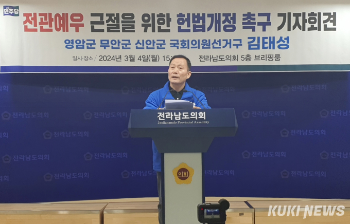 한편 김태성 예비후보는 이날 기자회견에서 ‘유전무죄, 무전유죄’의 고질적인 법조계 전관예우 폐습을 끊기 위해 헌법개정 활동을 펼치겠다고 약속했다.