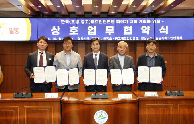 밀양시는 지난 20일 경상남도배드민턴협회 등 관련 협회, 연맹과 한국 초·중고배드민턴연맹회장기 전국학생선수권대회 개최를 위한 업무협약을 체결했다.