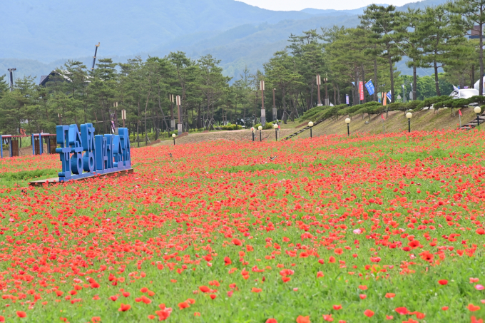 30일 청송군에 따르면 주왕산관광단지에 1만6000㎡(4900평) 규모의 관상용 꽃양귀비 단지를 조성해 지역 주민과 관광객에게 힐링의 공간을 제공하고 있다.