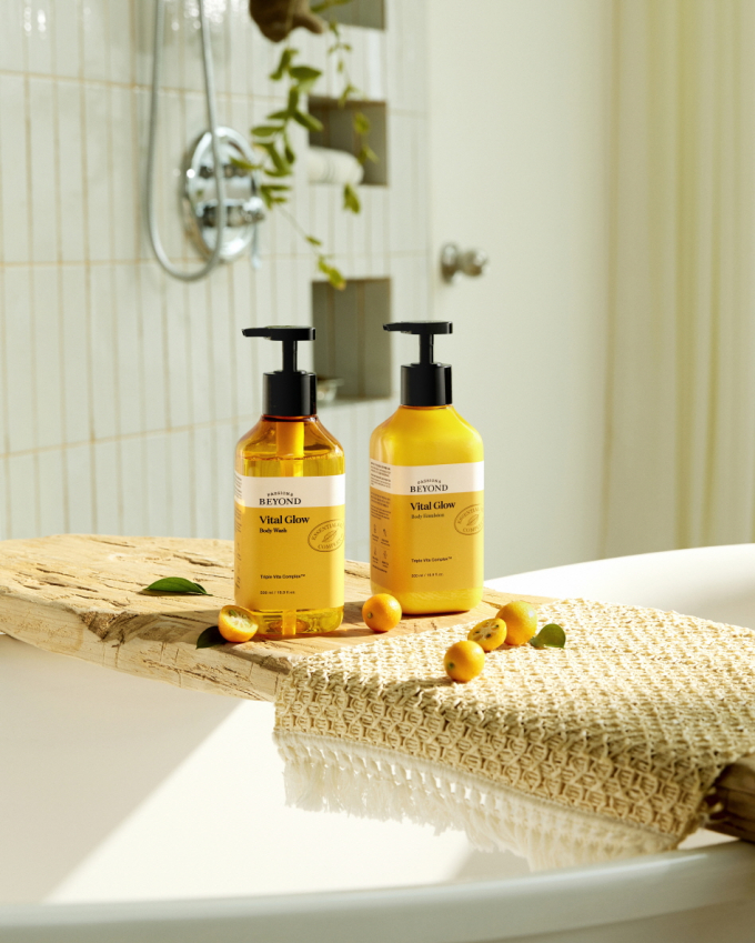 비욘드 바이탈 글로우 라인은 비타민C유도체, 비타민B12, 비타민E 등으로 구성된 ‘트리플 비타 콤플렉스’와 비타민 나무열매 추출물을 처방에 담아 칙칙한 바디 피부에 풍성한 영양감을 더하고 밝은 피부톤으로 가꿔준다.