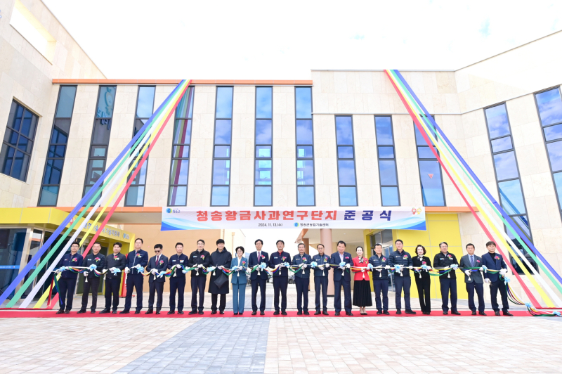 총사업비 146억원(국비 77억원, 도비 5억원, 군비 64억원)이 투입된 연구단지는 4ha 면적에 지상 2층 규모로 청송황금사과 미래관, 농산물품질관리실, 종묘연구실, 실증시험포장 등 핵심 연구시설을 갖췄다.