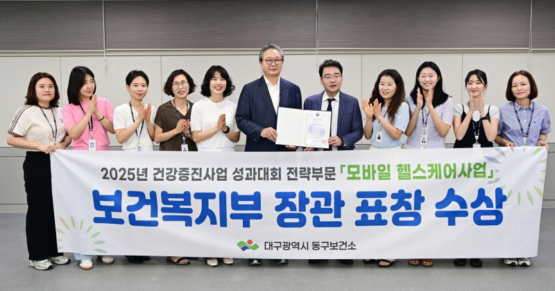 동구보건소는 ‘2025년 지방자치단체 통합건강증진사업 성과대회’에서 모바일 헬스케어와 AI·IoT 기반 어르신 건강관리 등 2개 중점사업의 우수성을 인정받아 보건복지부 장관 표창을 수상했다.