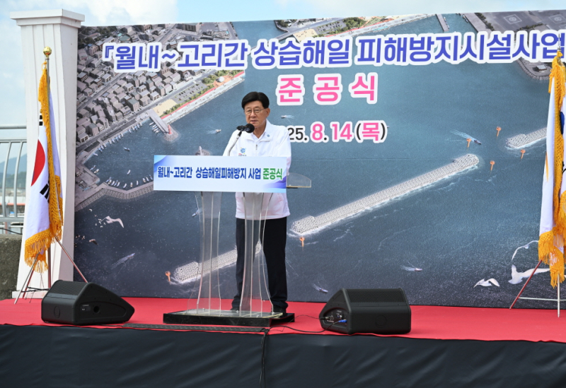 지난 14일 월내 매립지 내 광장에서 정종복 기장군수, 기장군의회 의원, 부산시 의회 의원, 고리원전 본부장, 지역주민 등 300여 명이 참석한 가운데 월내~고리간 상습해일 피해방지시설사업 준공식이 열렸다.