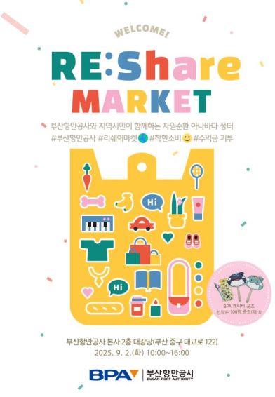 부산항만공사(BPA)는 다음 달 2일 오전 10시부터 오후 4시까지 BPA 본사 2층 대강당에서 나눔과 자원순환 문화 확산을 위해 'BPA 리쉐어 마켓'을 개최한다고 25일 밝혔다.