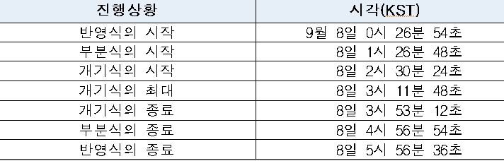 이번 개기식은 3시 53분 12초에 종료된다.