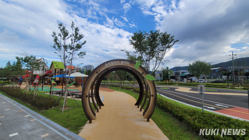 지난 1일 재개장한 천안삼거리공원에 숲이 생겼다고? 어린이놀이터 ‘숲속빌리지’ 이름을 듣고 처음부터 의아했다. 역시 숲은 없었다. 숲은 고사하고 어린 나무 몇 그루 심어놓고, 숲속빌리지로 이름 붙인 강심장이 놀랍다. 놀이터 바로 옆은 차량이 질주하는 도로다. 애초부터 좋은 놀이터 자리는 아니었다.