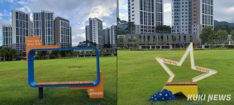포토존 설치 위치가 해괴하다. 천안삼거리공원 대표 경관이 그리 마땅치 않았나. 그렇다고 관광객이 아파트단지를 배경으로 기념사진 찍게 해서는 안 된다. ‘잔디마당’에 설치된 두 예쁜 벤치가 보는 이의 마음을 답답하게 한다. 차선책으로나마 능수정원이나 영남루 가로수길, 흥타령 노래탑 부근으로 옮기는 게 좋을 듯하다.
