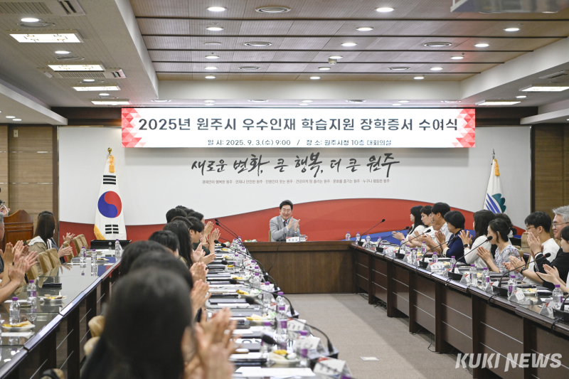 강원 원주시는 3일 시청에서 2025년 원주시 인재 학습지원 장학증서 수여식을 개최했다.