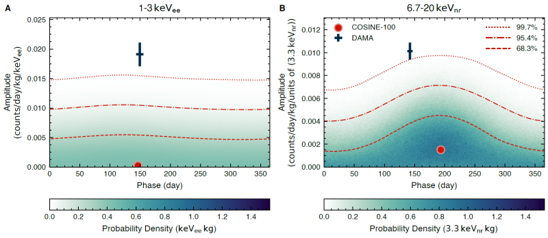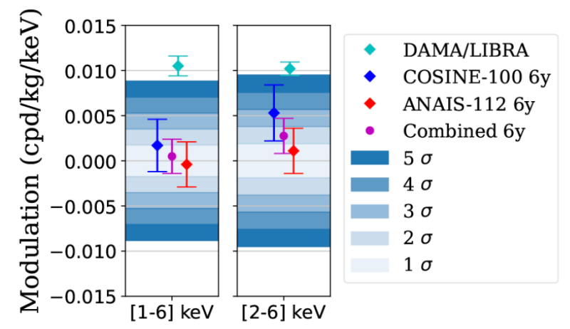 분석결과 코사인-100 실험에서는 다마가 주장한 암흑물질 연간 변조신호가 나타나지 않았다.