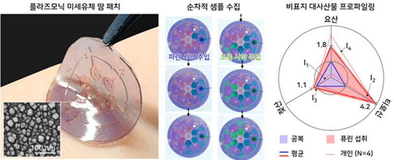 이는 땀 패치에 시간 순서대로 땀을 채집할 수 있는 미세유체 기술을 접목한 것으로, 다양한 대사물질의 체내 변화를 쉽게 측정할 수 있다.