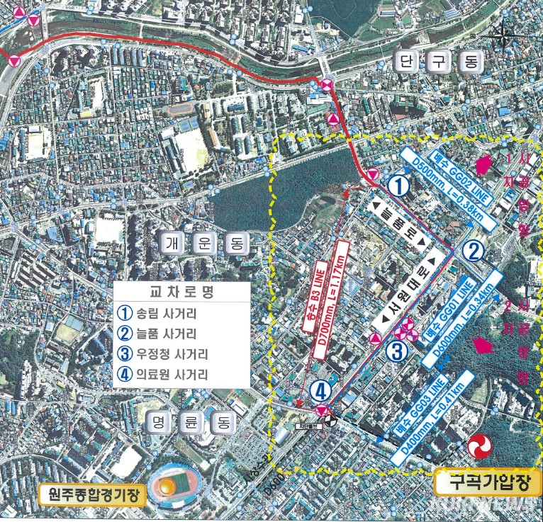 원주시상하수도사업소는 8일부터 11월 30일까지 태장 배수지 설치사업 목적으로 송배수관로 설치 공사를 진행한다.