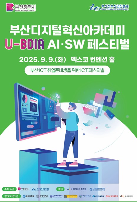 부산시는 9일 오전 10시부터 오후 5시까지 '2025 U-BDIA AI·SW 페스티벌'을 벡스코 컨벤션홀 1·2층에서 연다고 밝혔다.