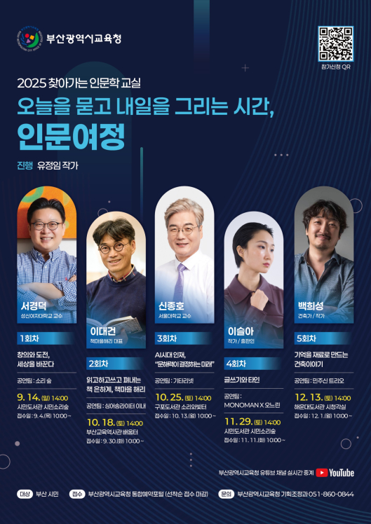 프로그램은 시민 사전 질문을 바탕으로 한 대담, 음악 공연 등으로 구성됐다. 시민·중앙·구포·해운대도서관에서는 각 회차 주제와 연계한 도서 전시도 진행할 예정이다.