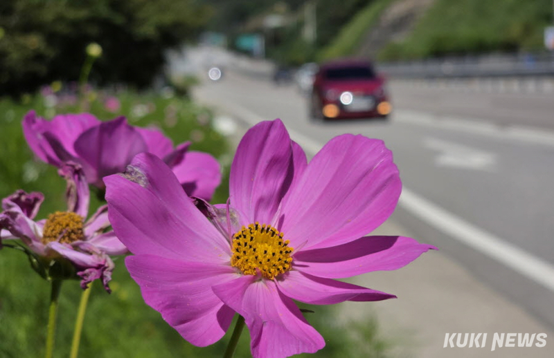 아침저녁으로 선선한 초가을 날씨를 보인 지난 10일 설악산 길목인 강원 인제군 신남면 44번 도로변 곳곳에 코스모스가 활짝 피어있다.
