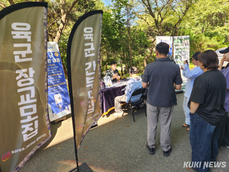 육군 장교·부사관 모집 홍보 부스가 지난 11일 강원 횡성군 송호대학교 진선미관 앞에서 운영됐다.