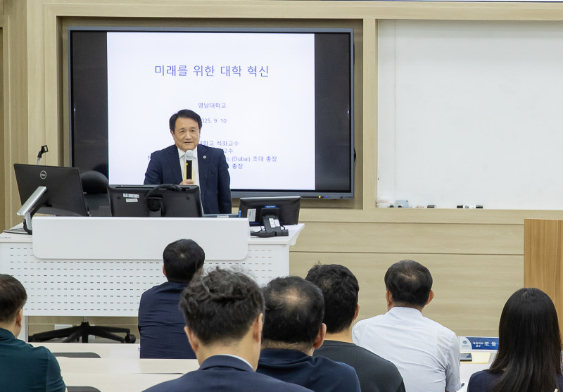 이번 특강은 WURI 세계혁신대학 랭킹을 근거로 국내외 대학의 혁신 흐름을 비교하며, 영남대가 미래형 대학으로 도약할 전략을 공유하는 자리이기도 했다.