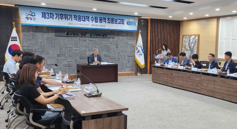 영광군은 지난 17일 군청에서 송광민 부군수를 비롯해 군의원, 전문가, 관계 공무원 등이 참석한 가운데 '제3차 영광군 기후위기 적응대책 수립' 최종 용역 보고회를 개최했다고 18일 밝혔다.