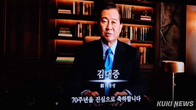 이날 기념식에서는 고(故) 신익희 민주당 초대 당대표와 민주당 출신 대통령인 고 김대중·노무현 전 대통령의 생전 목소리와 모습을 인공지능(AI)으로 구현한 축사 영상도 공개됐다.