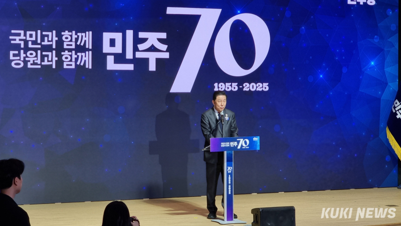 민주당은 19일 오전 서울 여의도 국회 의원회관 대회의실에서 ‘국민과 함께, 당원과 함께 민주 70’을 주제로 기념식을 열었다. 행사에는 정청래 대표, 김병기 원내대표를 비롯한 당 지도부와 원로 인사, 당원들이 참석했다. 이재명 대통령은 직접 자리하지 못했지만, 강훈식 비서실장이 축사를 대독했다.