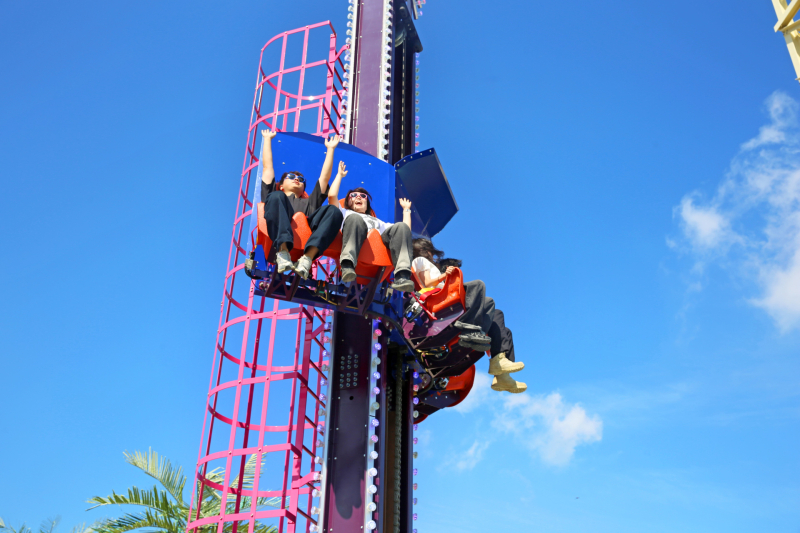 뱅앤드롭은 오르내리는 즐거움뿐만 아니라 어트랙션 네이밍 속에 담긴 재미 요소가 또 다른 포인트다. '뱅’'bang)은 '쿵'하는 타격음을 의미하는데 어트랙션 출발 전 해머 망치를 내려치며 출발을 알리는 흥미 요소를 살렸다. 또한 그 강도에 따라 각기 다른 높이로 치솟아 예측할 수 없는 재미를 선사한다.