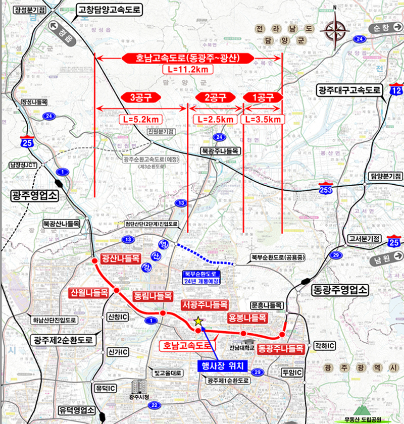 한편 호남고속도로 동광주~광산IC 구간 확장 사업은 2015년, 정부와 광주시가 총 2700억 원의 사업비를 절반씩 부담하기로 합의했다.