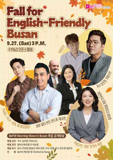 부산영어방송은 오는 27일 오후 3시 부산 수영구 복합문화공간 F1963 오픈 스퀘어에서 시민과 함께하는 공개방송 '모닝웨이브인 부산 : 폴 포 잉글리쉬 부산'을 진핸다고 23일 밝혔다.