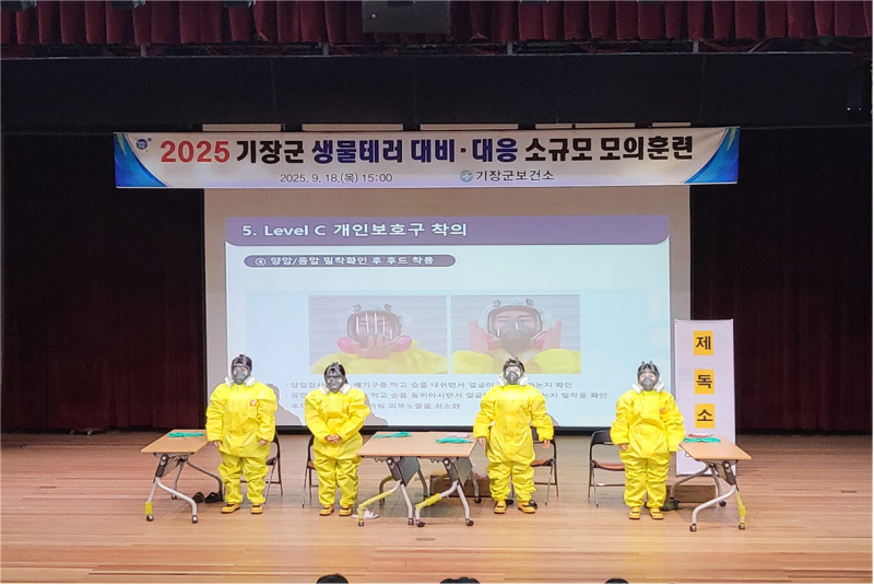 부산 기장군은 최근 기장군청 차성아트홀에서 전국·장애인 체육대회를 앞두고 '생물테러 대비·대응 모의훈련'을 성황리에 마쳤다고 23일 밝혔다.